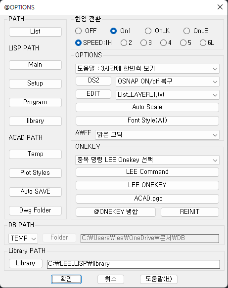 리습 명령들은 한/영전환이 바로적용 가능하지만 CAD 자체 명령어(text,mtext)에 대해 일방적인 방식은 힘들고