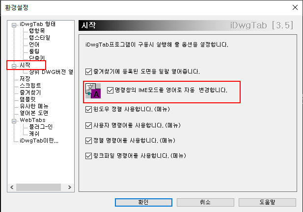 한/영 자동전환은 캐드명령어 종료후 키보드상태가 한글이면 전환이 이루워 집니다.