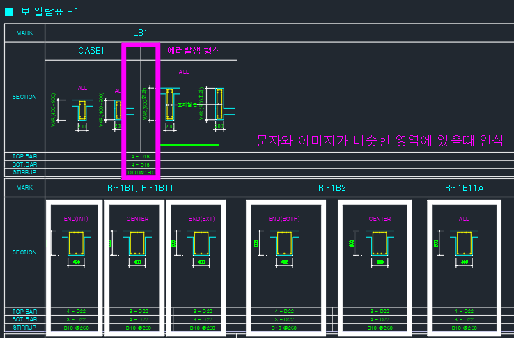 - 그외 크기 및 철근의 문자는 단일문자만 인식가능