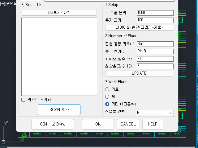- 추가 및 수정 : DCL설정에서 '선택보 그리기'로 생성 수정후 추가 스캔하여 업데이트