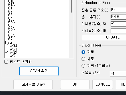 2 Number of Floor (최하층~최상층 설정) - 작업층 선택용 목록