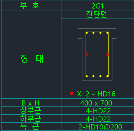 - 상부근 문자보다 위에 있는 철근문자는 보조근으로 인식