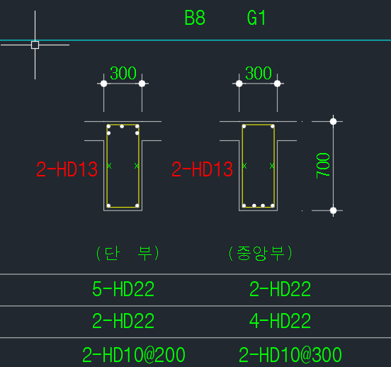 - 연속된 보의 END와 INT를 구분하여 철근배치