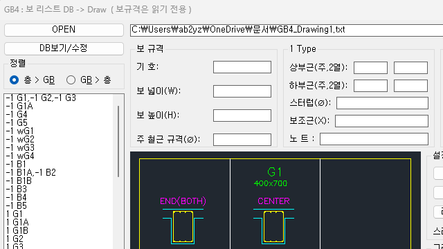 3-3 DB파일명은 GB4_캐드파일명.txt 로 CAD파일이 있는 폴더에 저장됨