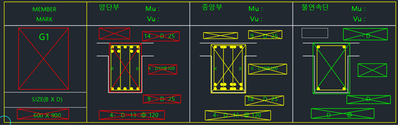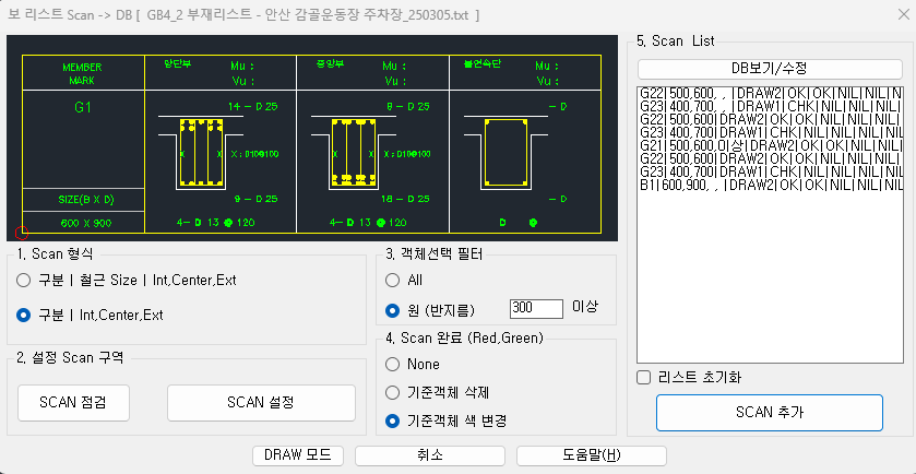 - CAD파일로된 보일람(Beam Schedule)을 스캔하여 DB파일로 저장한다