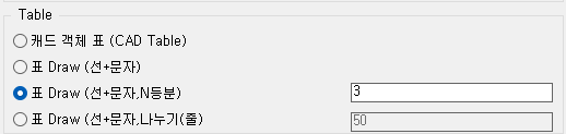 - N등분 : 생성되는 표를 지정한 수량만큼 나누기 적용 (FORM, M4적용)