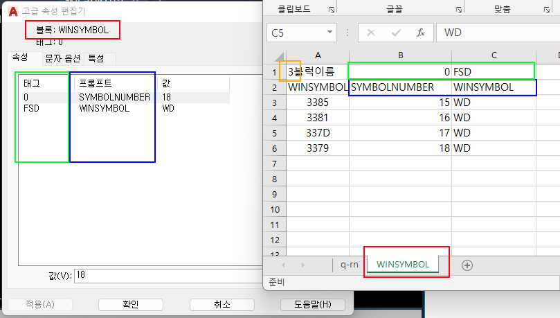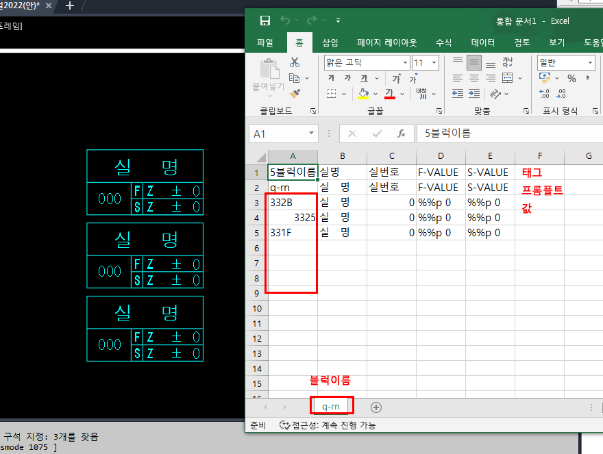 - 엑셀에서 편집된 내용으로 속성블럭 편집하기