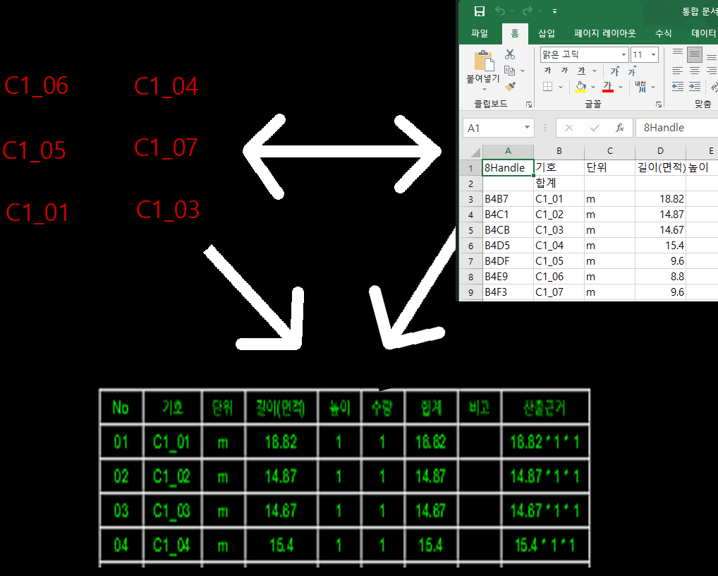 - 캐드-엑셀로 상호 편집가능하고 표로 작성하기 가능