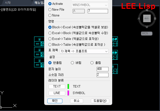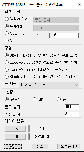 - 속성블럭의 정보를 표 또는 엑셀로 보내기