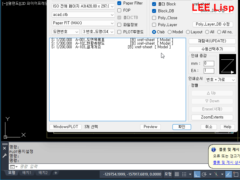 - All no. - 모형+종이공간 통합 도면번호순 자동선택