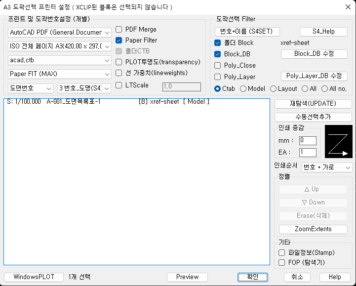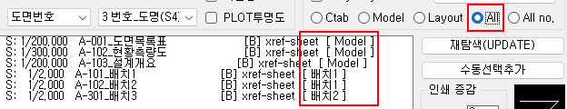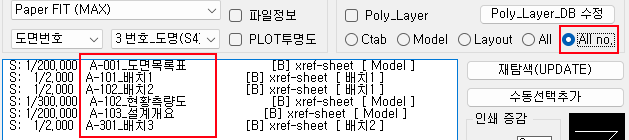 - All no. - 모형+종이공간 통합 도면번호순 자동선택