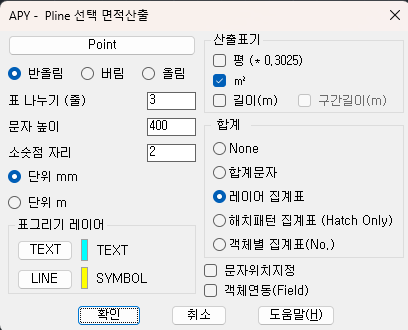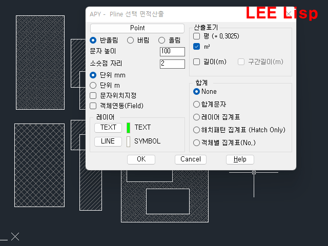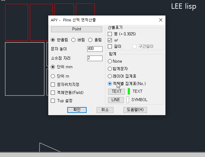 - POLYLINE등 객체선택 면적 산출 및 집계표 작성