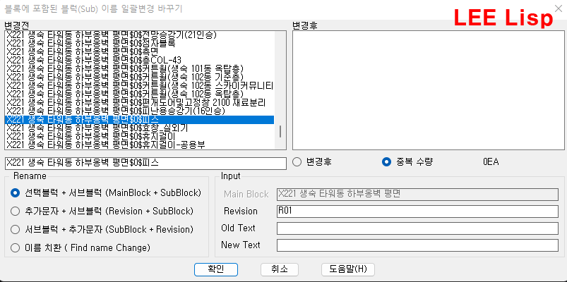BNS - 선택블럭내 블럭이름 일괄 변경