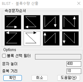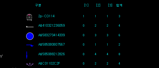 - 순서 : 옵션 DCL ▶ 1구역 선택 ▶ N구역 선택 ... ▶ 엔터(or 스페이스바) ▶ 산출서 삽입점 선택