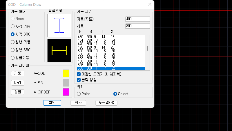 - 원기둥 / 사각형 / SRC / STEEL 형태의 기둥 그리기