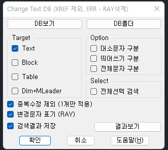 - 선택 : TEXT, MTEXT, ATTDEF, INSERT, XREF, TABLE, MULTILEADER, DIMENSION