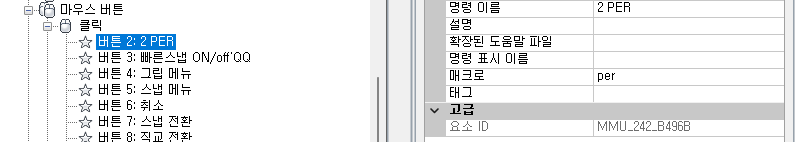 버튼2(우측마우스버튼)는 이름을 스냅2으로 매크로엔 ( PER ) 이라고 입력하고