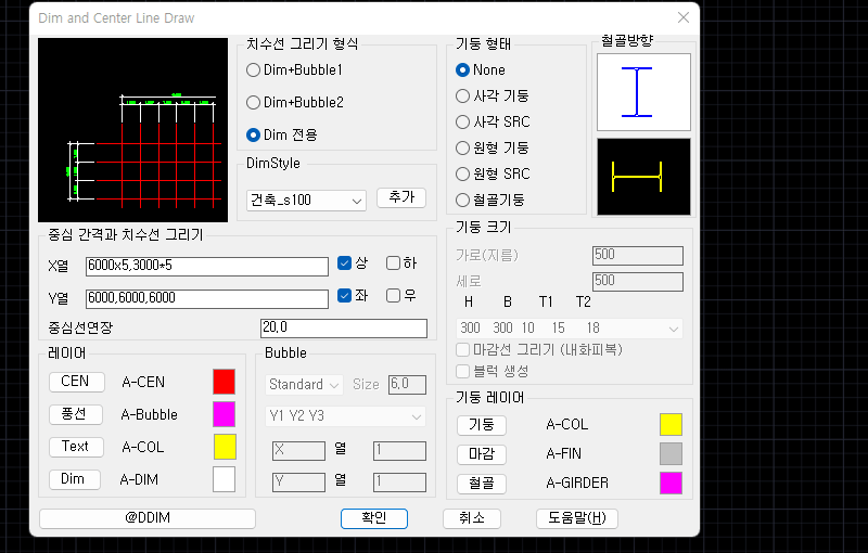 DRS - 중심선 과 치수선, 기둥 그리기 (2025D3이후)