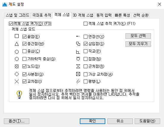 명령어 : DS2 ( DSETTINGS2 - OSNAP 별도저장)