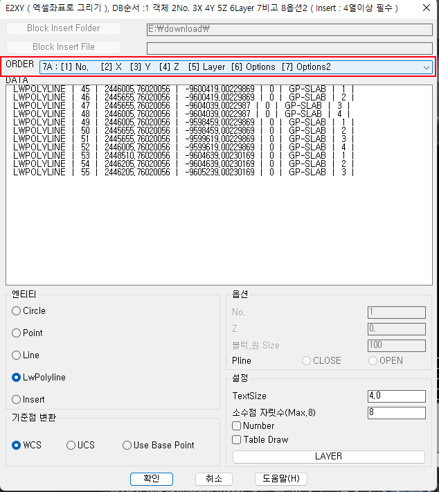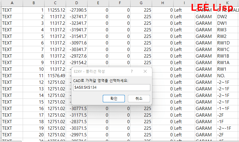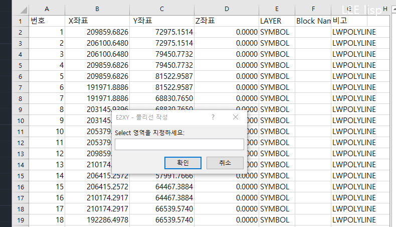 E2XY - 엑셀좌표로 CAD객체 그리기 ( EXCEL to CAD)