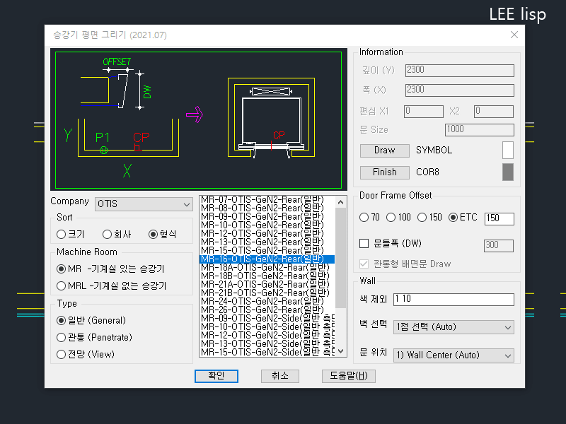 2) Open Center : 벽선택 > 승강기 중심위치 선택(CP)