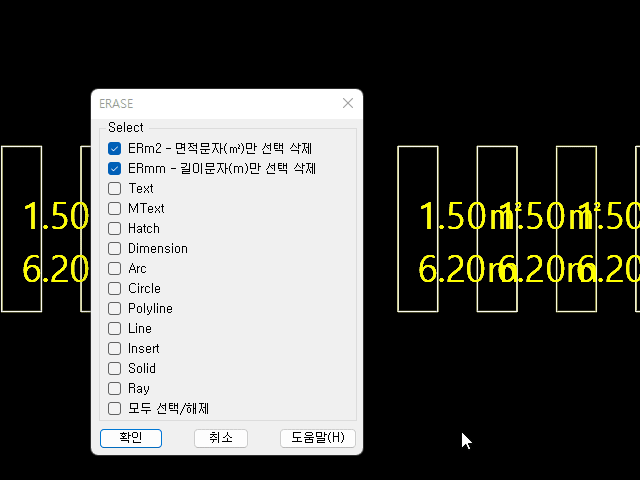 - Text와 Mtext를 선택하면 erm2 / ermm / 숫자만 선택이 비활성화되며 다른문자 객체 선택가능