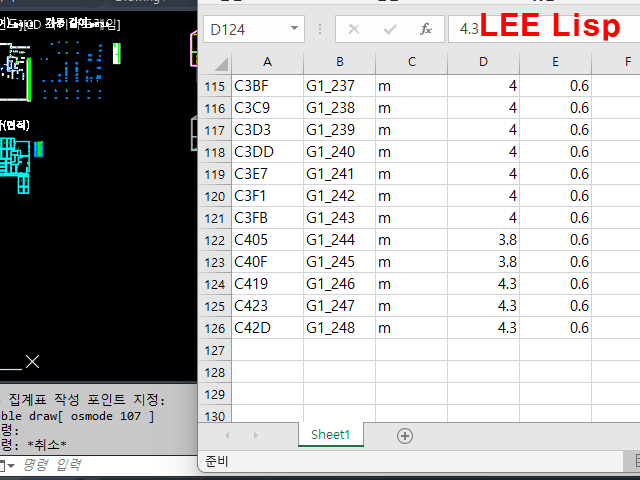 - 캐드-엑셀로 상호 편집가능하고 표로 작성하기 가능
