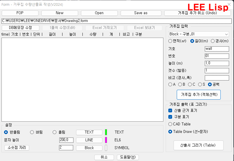 | Form - 거푸집 수량산출표 작성 (처음사용자용) (2) | 2024.02.19 |
