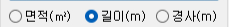 면적(㎡) / 길이(m) / 경사(m) 중 택1