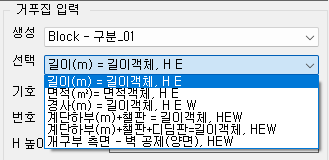 2. H 높이(m) : 사용자 입력 (길이->면적 옵션 작용시 1.0으로 바뀜, 변경가능)