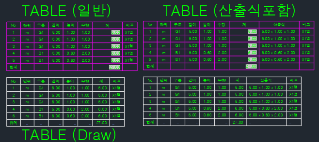 4-2. Table : 캐드객체(표) 작성 ( 간단한 계산식 포함 )