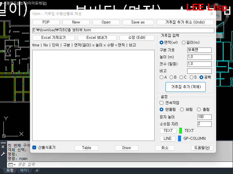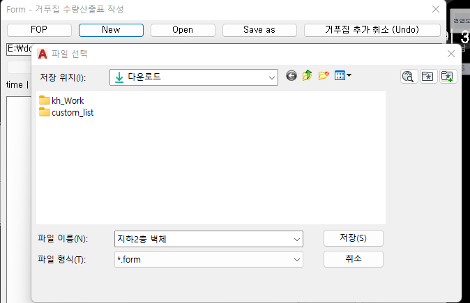 Form - 거푸집 수량산출표 작성 (처음사용자용)