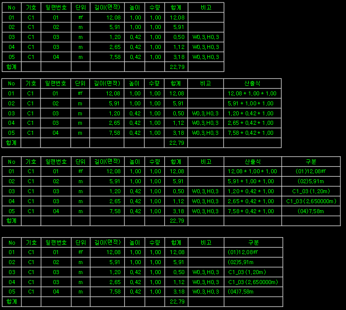 실별 면적, 시스템동바리, 거푸집등등 산출표 작성하는 프로그램