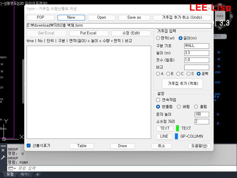 | Form - 거푸집 수량산출표 작성 (V2025) -2025D2이후 (3) | 2024.02.19 |