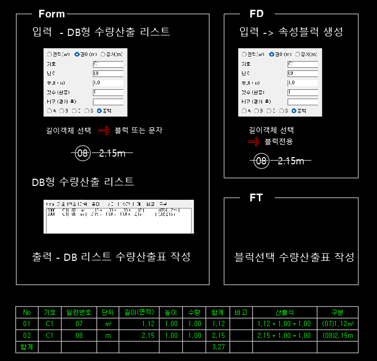 FT : 속성블럭이나 엑셀에서 값을 가져와 산출리스트를 작성