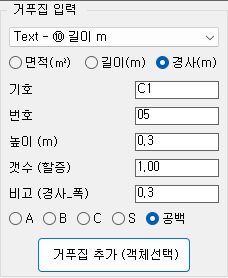 2단계 - 거푸집 입력 (동일조건 객체별 선택하여 리스트 작성)