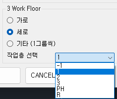 작업층 선택 : 최하층~최상층 중 택1