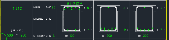 - 이미지에서 주근의 수량/스터럽/표피철근(보조근)의 위치 및 수량 확인