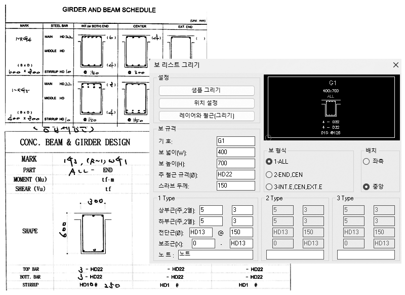 - 구조기술사가 작성한 보리스트를 GBS로 스캔하여 DB를 생성하고 GB4에서 보리스트를 한번에 작성
