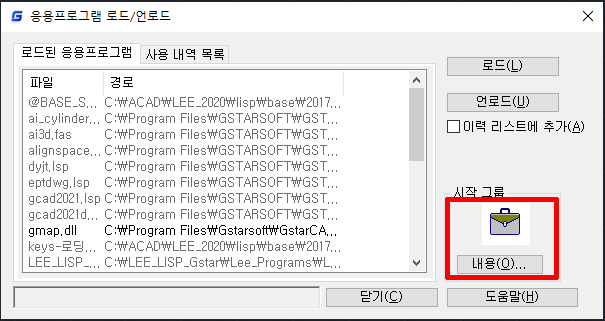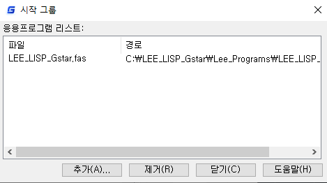 APPLOAD > 시작하기 모음 (목차) > 추가 > LEE_Lisp.LSP 또는 LEE_Lisp_main.Fas선택
