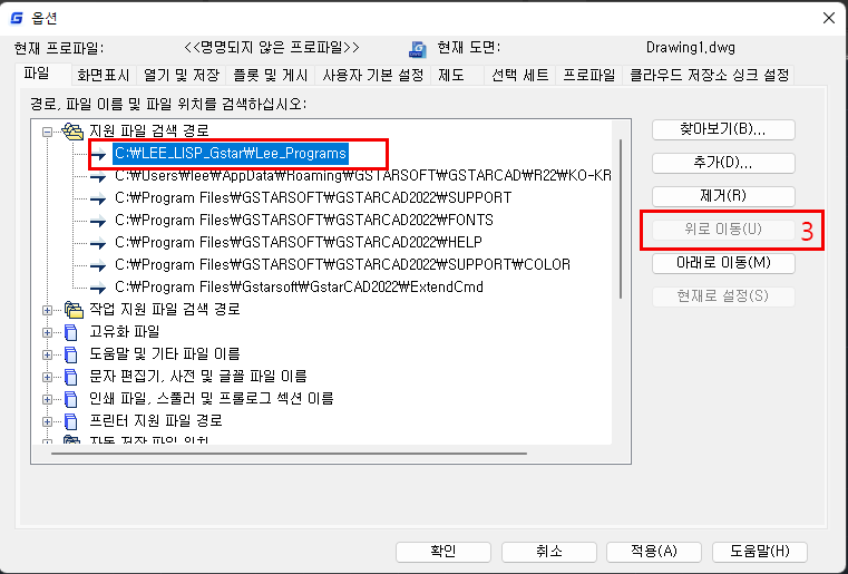 2.리습프로그램 경로 추가 ( Lee_LISP.LSP 파일이 있는 경로 )