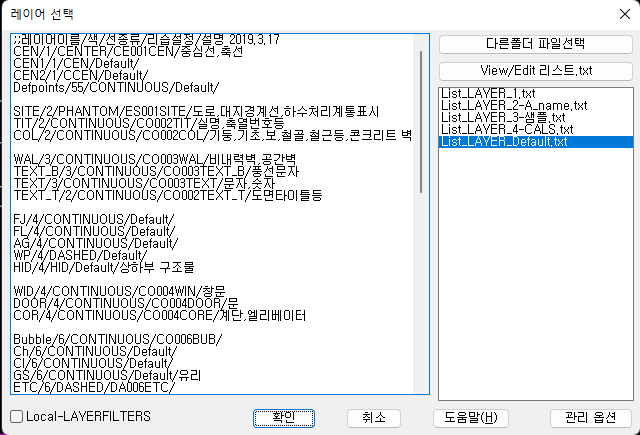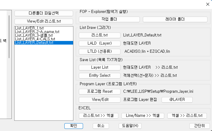 - @LAYER로 설정된 프로그램 기본값과 연동된 List_LAYER_Default.txt 파일로 적용