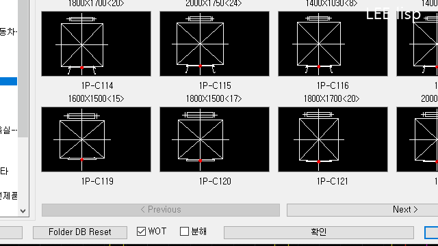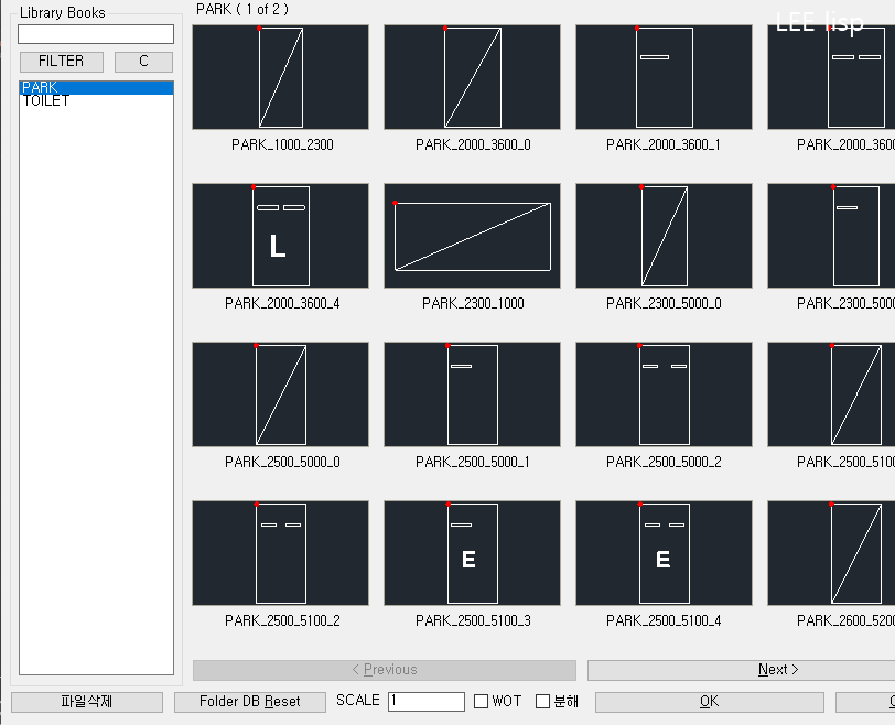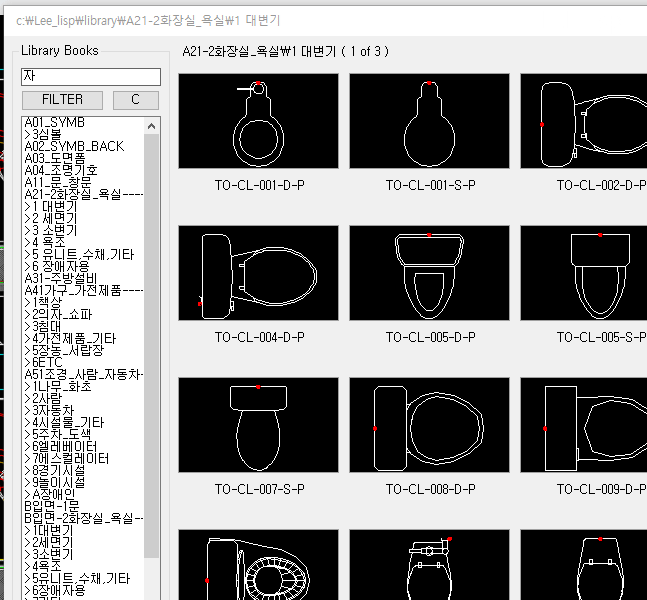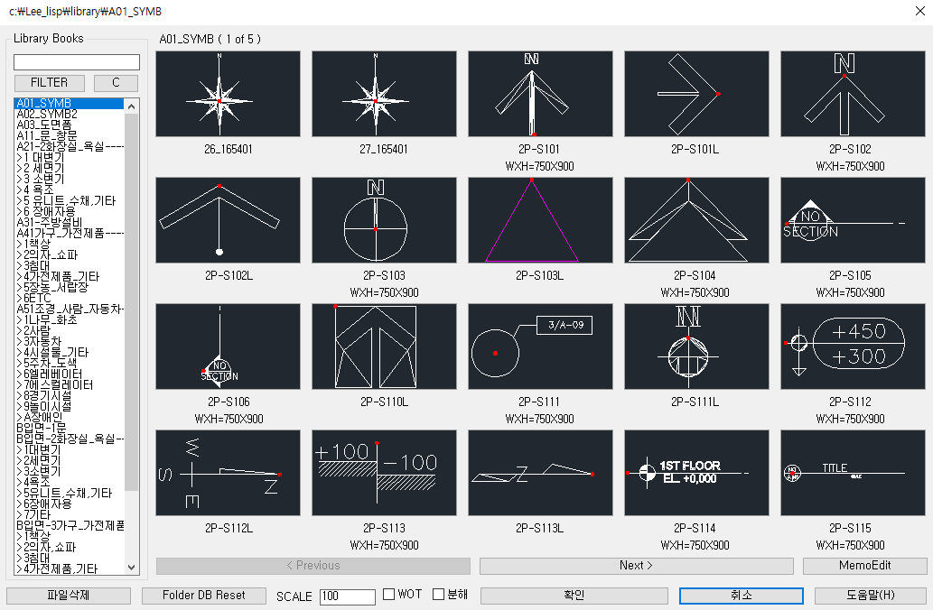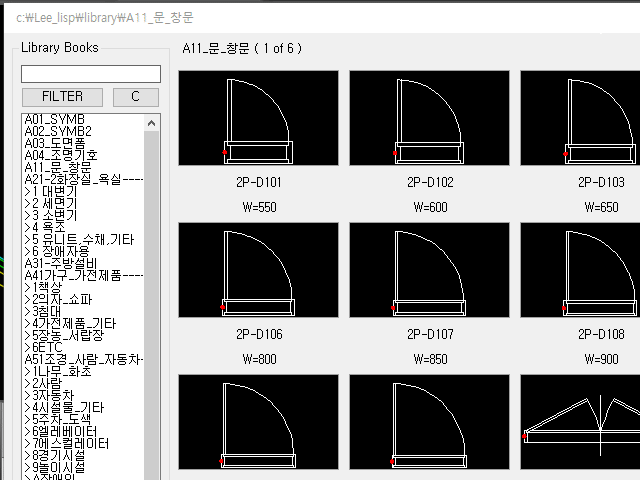 - C:\Lee_lisp\library에 분류된 블록을 관리하거나 또는 Insert 한다.