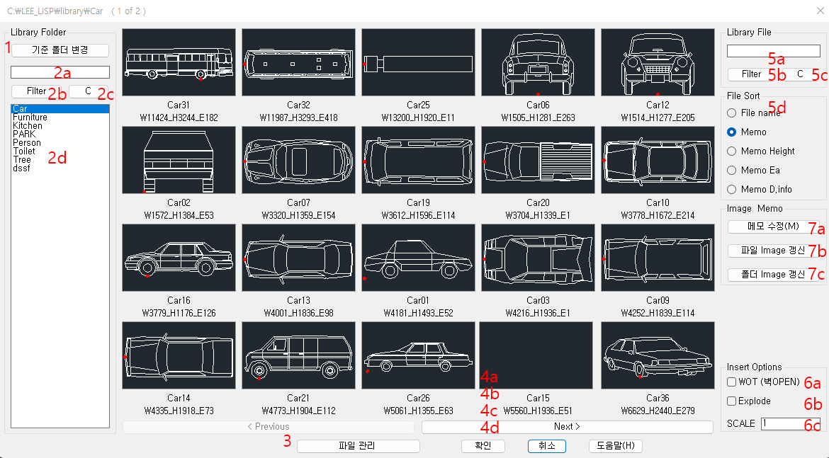 7a 메모수정(M) : 선택된 블럭의 메모와 파일이름을 수정