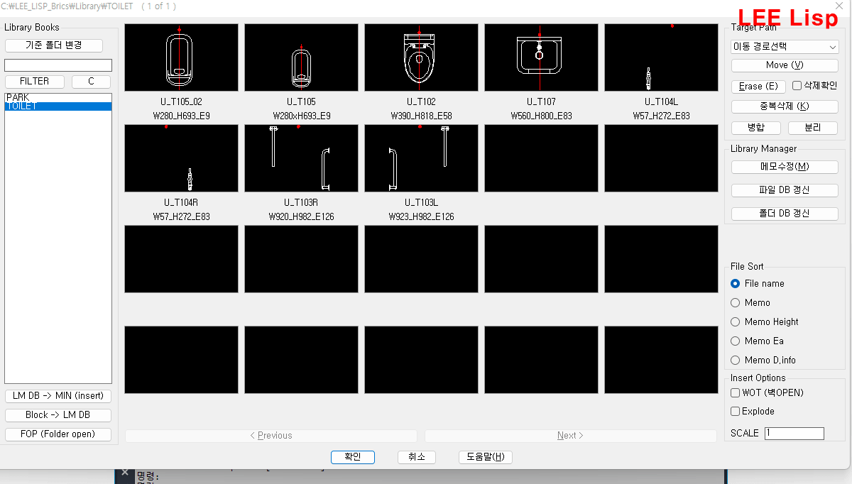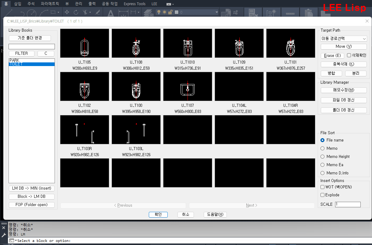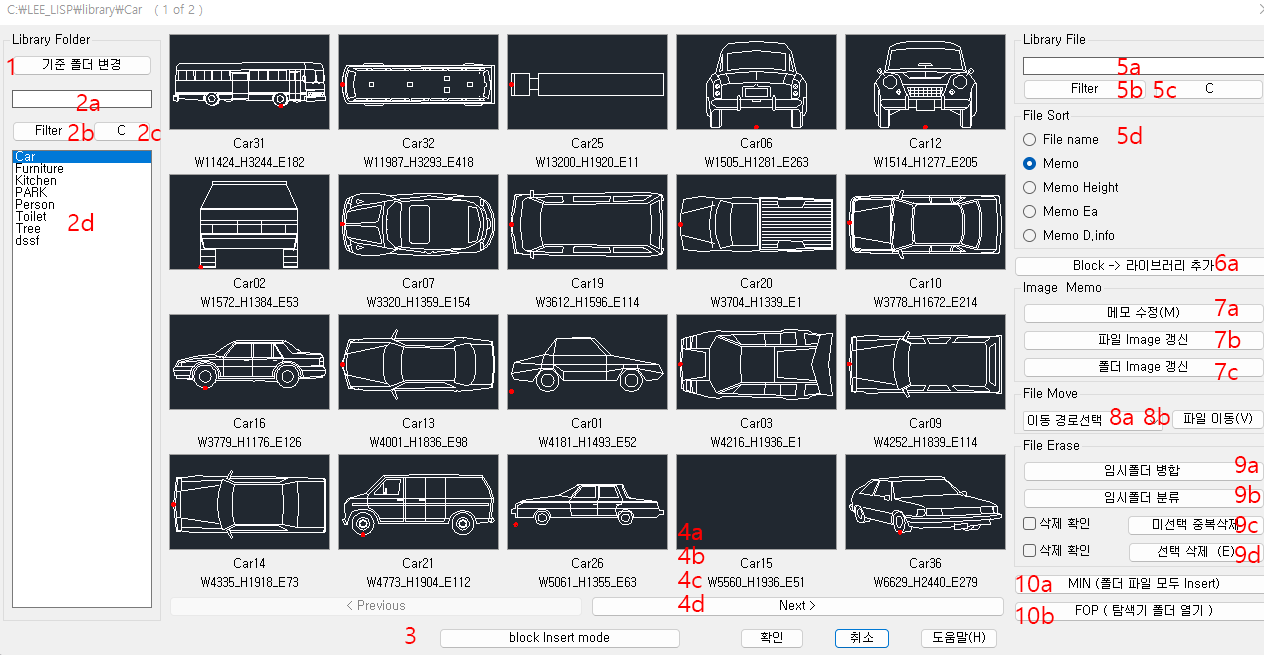 - LBS (라이브러리 블럭 정렬), LBR (라이브러리 블럭 이름변경,QuickNumbering) 명령추가
