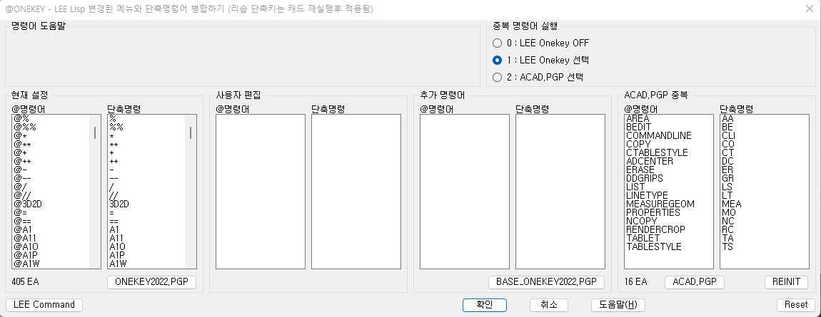 • 리습단축명령과 ACAD.PGP 중복명령 선택 (2022A4부터)