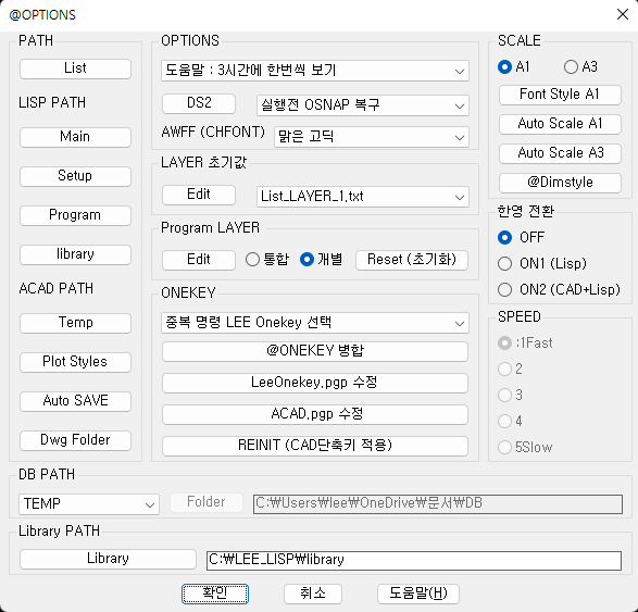LAIN용 기본값 ( C:\LEE_LISP\list_LAYER_Default.txt) 파일을 저장