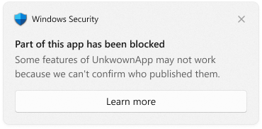 스마트 앱 컨트롤은 앱을 안전하게 사용하고 있다는 것을 알고 있지만 앱이 연 다른 파일의 안전에 대해 확신할 수 없습니다. 파일의 서명을 확인하여 게시자를 확인합니다. 파일이 제대로 서명되지 않은 경우 Smart App Control에서 파일을 차단합니다. 파일에 의존하는 기능은 작동하지 않지만 나머지 앱은 계속 제대로 작동할 수 있습니다.