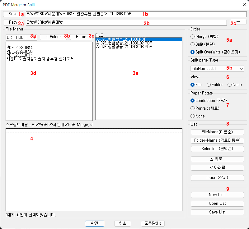4: 병합 또는 분리할 작업대상 파일목록