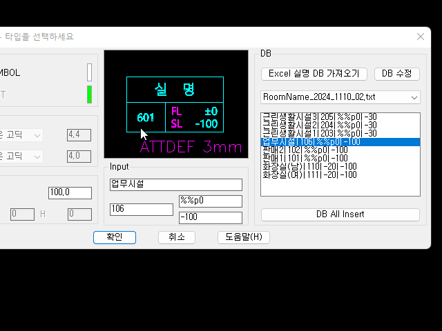 - 블럭삽입 3mm : Data폴더에 있는 심볼을 삽입 ( 실명 3.75 기타 3mm ,A1기준)